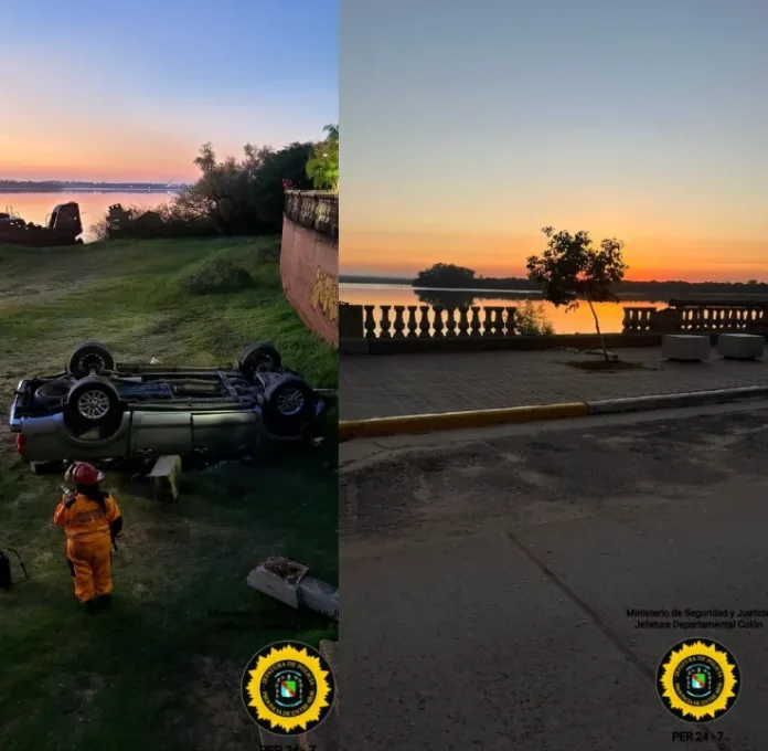 De acuerdo a las primeras diligencias, el rodado impactó contra la estructura de contención y finalizó su recorrido en la zona de la ribera.