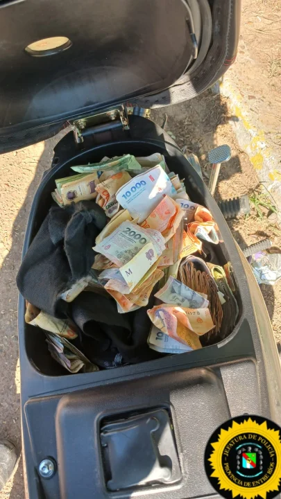 Por disposición de la Fiscalía en turno y la autoridad judicial interviniente, se procedió al secuestro del dinero, una motocicleta Keller 110 cc, un teléfono celular y documentación apócrifa.
