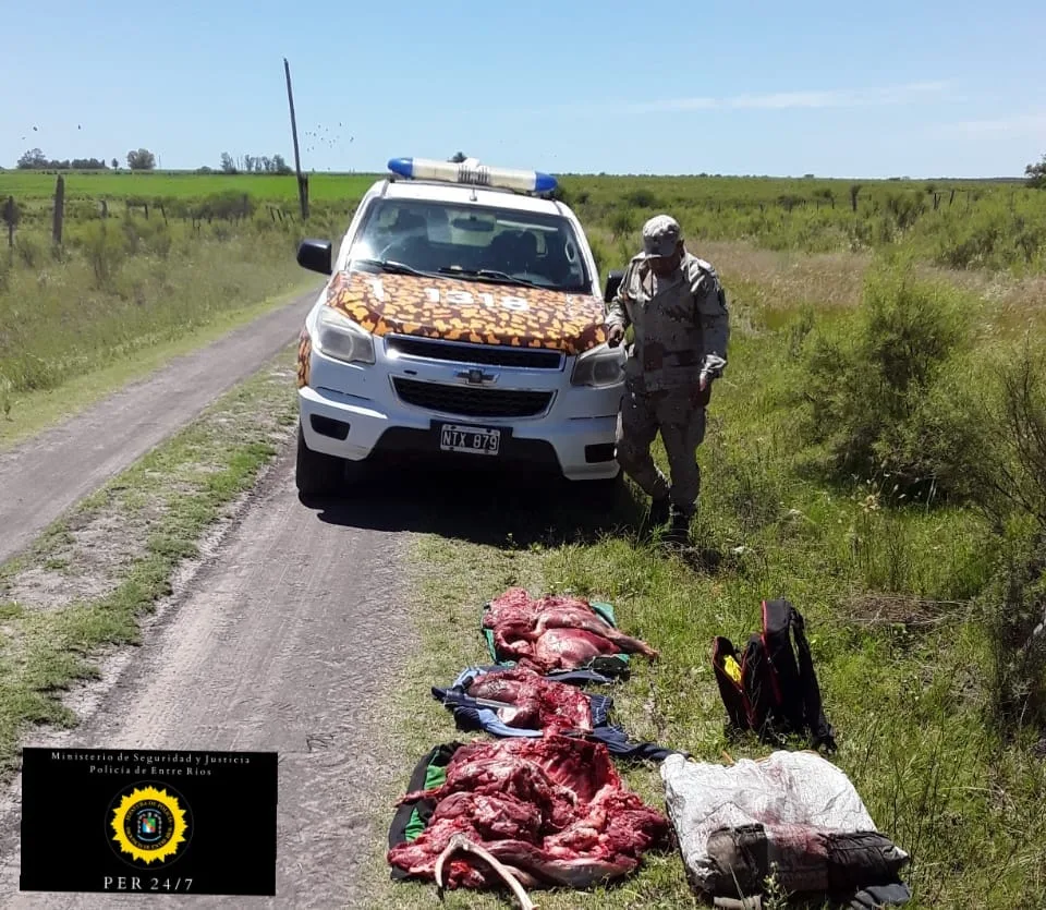 Este sábado en horas del mediodía, personal policial de la Brigada de Prevención de Delitos Rurales Gualeguaychú, que se encontraba de operativo vehicular e identificación de personas sobre calle N° 4 de Colonia El Potrero, observan salir de la Estancia El Potrero a cuatro masculinos mayores de edad, por lo cual fueron identificados y se constató que regresaban de ejercer la actividad de Caza de la Reserva El Potrero, llevando consigo maletas conteniendo cortes cárnicos de ciervo y de chancho jabalí, como así también dos linternas.