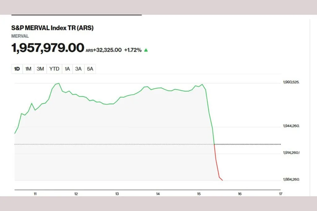 La bolsa porteña se derrumbó entre las 15 y las 15.30, a medida que los inversores y especuladores miraban a través de las pantallas la esperada recepción que el presidente de Estados Unidos, Donald Trump, deparó a su par argentino, Javier Milei.