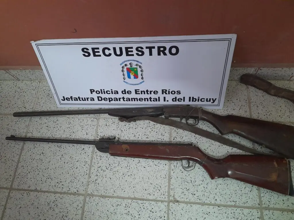 Asuntos Judiciales: En el día de hoy viernes 28 de abril, en circunstancias que se cumplimentaba una diligencia judicial, personal policial de la Jefatura Departamental Islas del Ibicuy, precedió al secuestro de dos armas de fuego, tipo de hombro, por el supuesto delito de tenencia ilegal de arma de fuego, estipulado en el artículo 189 del Código Penal de la Nación