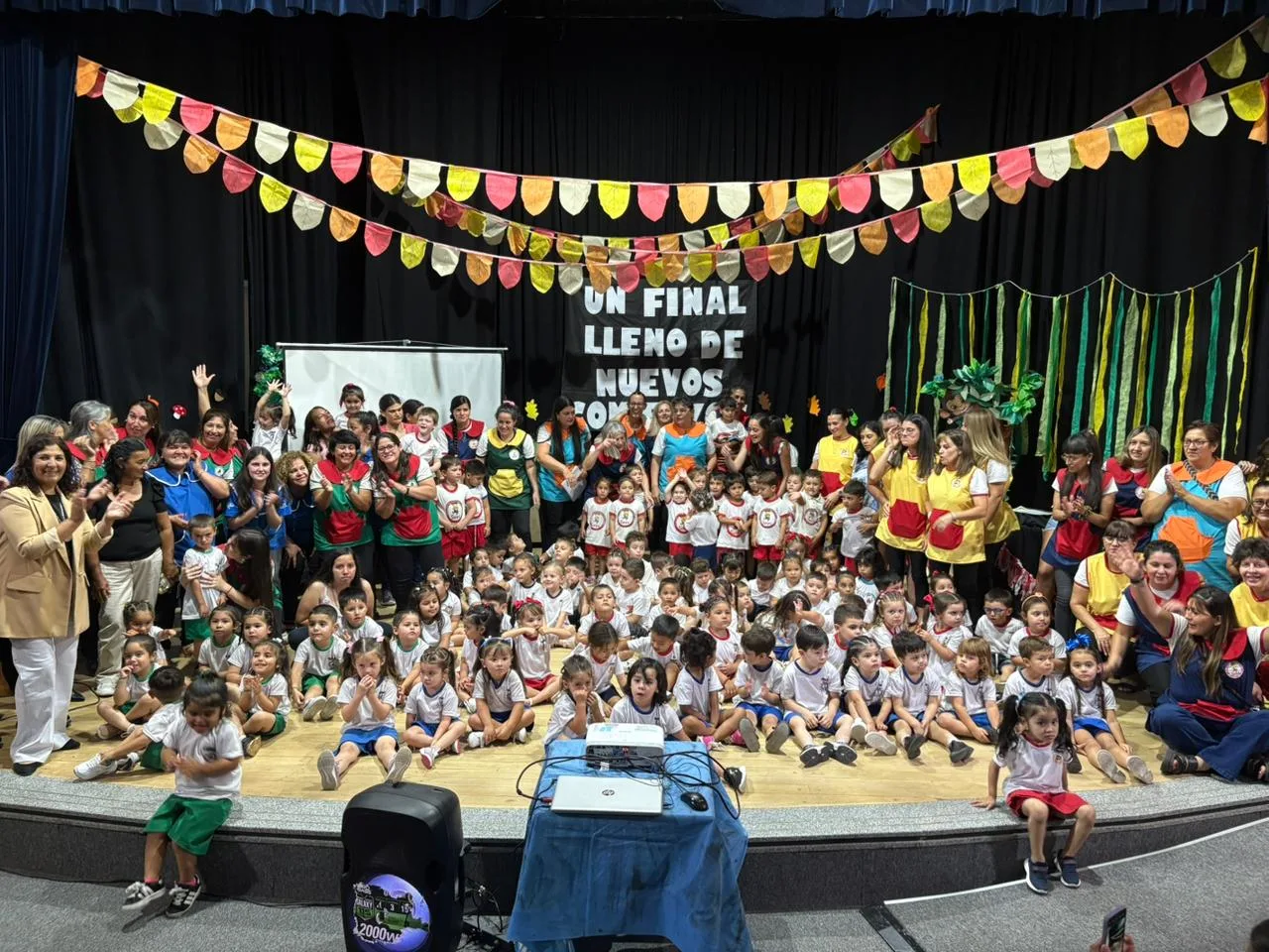 El dato más celebrado llegó cuando anunció que este año egresan 104 niños y niñas de sala de 3, un número que fue recibido con orgullosos aplausos por parte del auditorio.