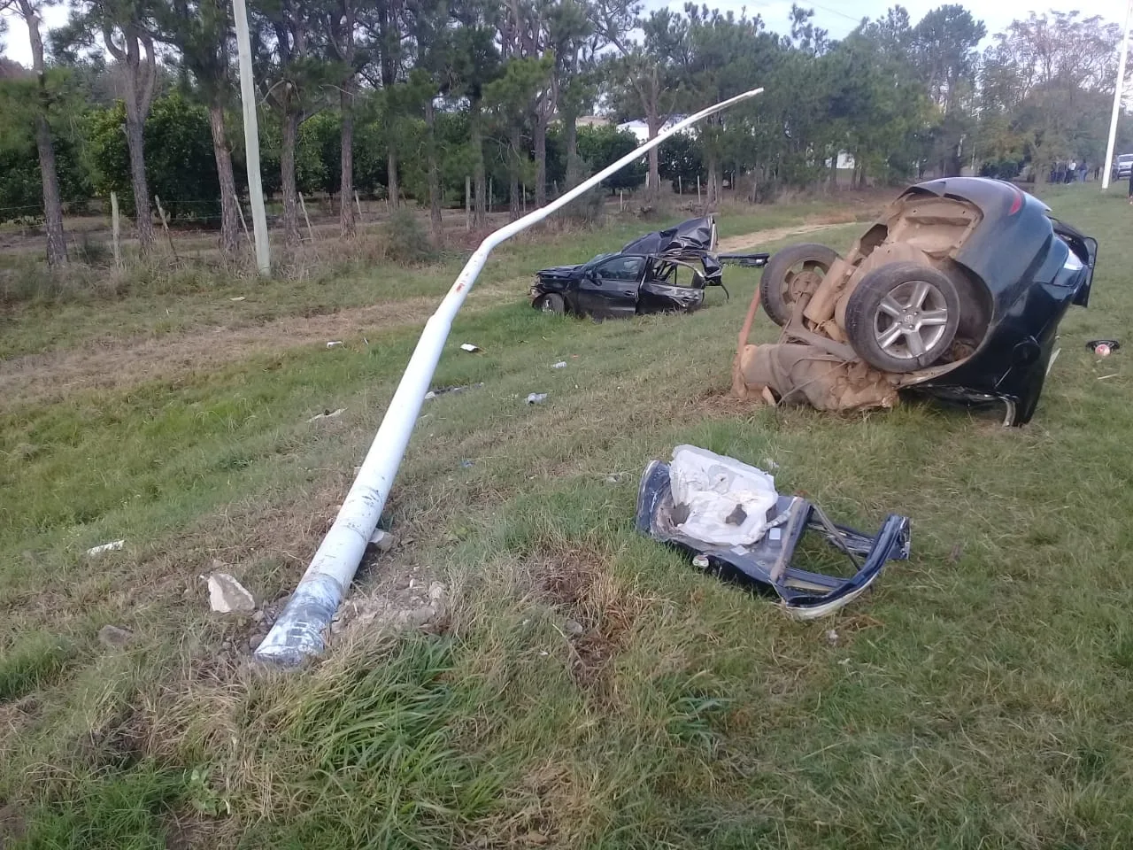 Mediante una inspección se observa que el vehículo transitaba por la ruta en sentido Noroeste a Sureste, de Chajarí a Villa del Rosario; aparentemente el mismo pierde el control y se desliza hacia la banquina opuesta y en consecuencia colisiona con una columna de alumbrado público partiendo el automóvil a la mitad.