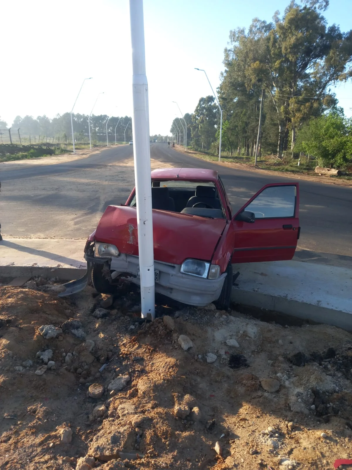 Concordia: Hoy a la mañana, personal de comisaría Octava, tomó intervención por un accidente en Avda. Presidente Illia y rotonda de ingreso a campo El Abasto, donde un automóvil Ford Escort impactó contra un poste de luz. El conductor, de 26 años, fue trasladado al hospital Masvernat, donde se informó que presenta politraumatismos con TEC leve, escoriaciones, herida cortante en labio con sutura y traumatismo en mano derecha.