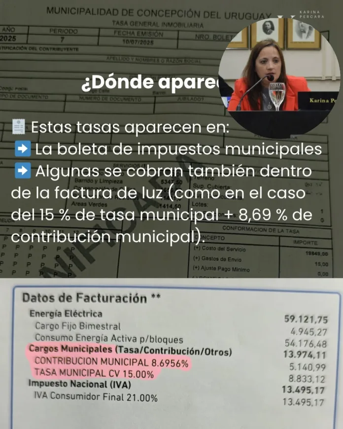 En un posteo reciente en sus redes sociales, la concejal de Concepción del Uruguay, Karina Percara, abrió el debate sobre un tema que toca directamente el bolsillo de los vecinos: las tasas municipales. Bajo el título “¿Sabés qué son las tasas municipales y por qué las pagamos?”, Percara explicó en lenguaje claro qué representan estos cargos, cómo se distribuyen y por qué es importante entenderlos para ejercer derechos como ciudadanos.