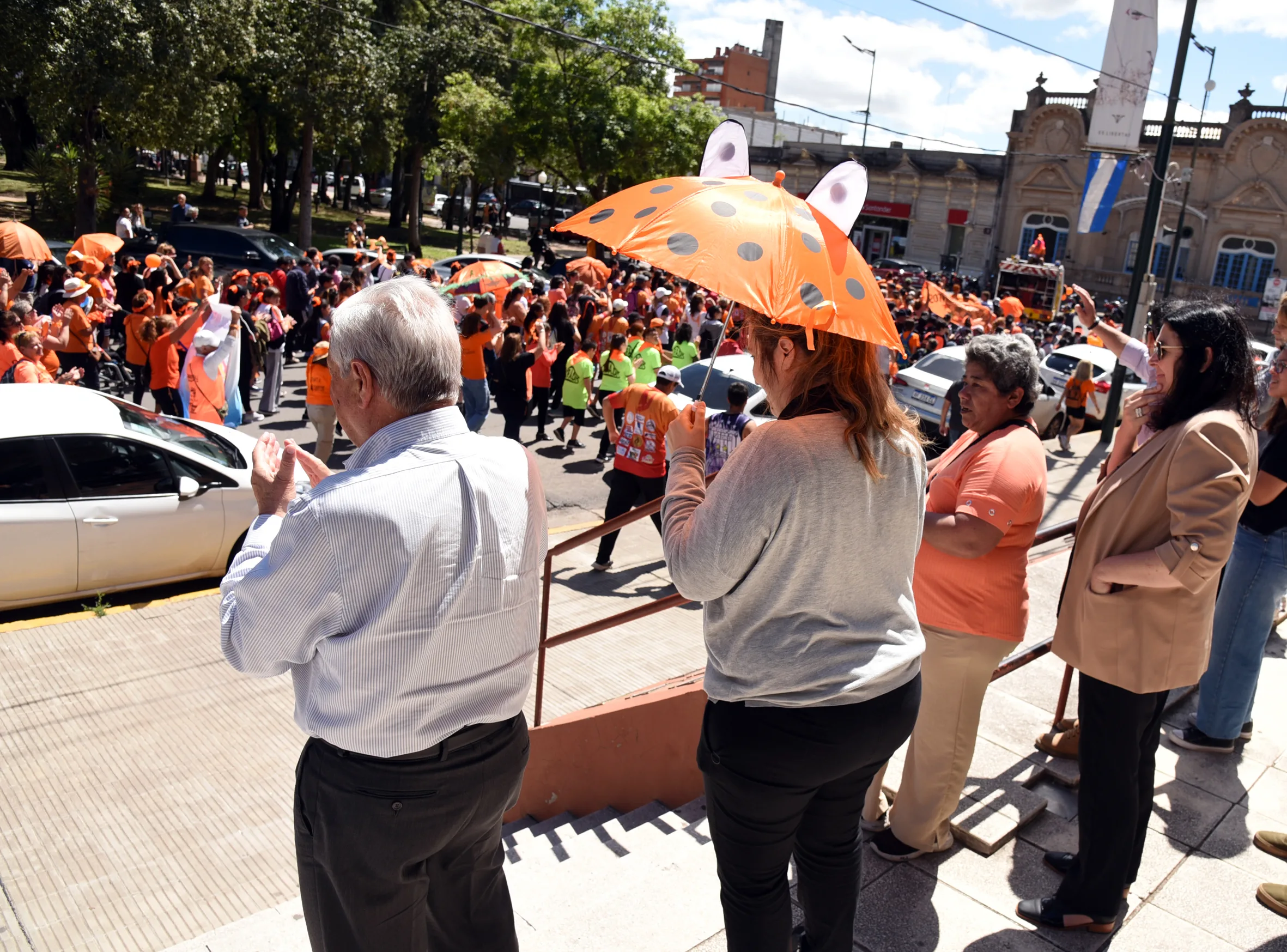 Vistieron prendas color naranja quienes participaron de la actividad, que tuvo como objetivo concientizar a la comunidad sobre la importancia de la convivencia plena de las personas con discapacidad en los ámbitos sociales, celebrando el aniversario.