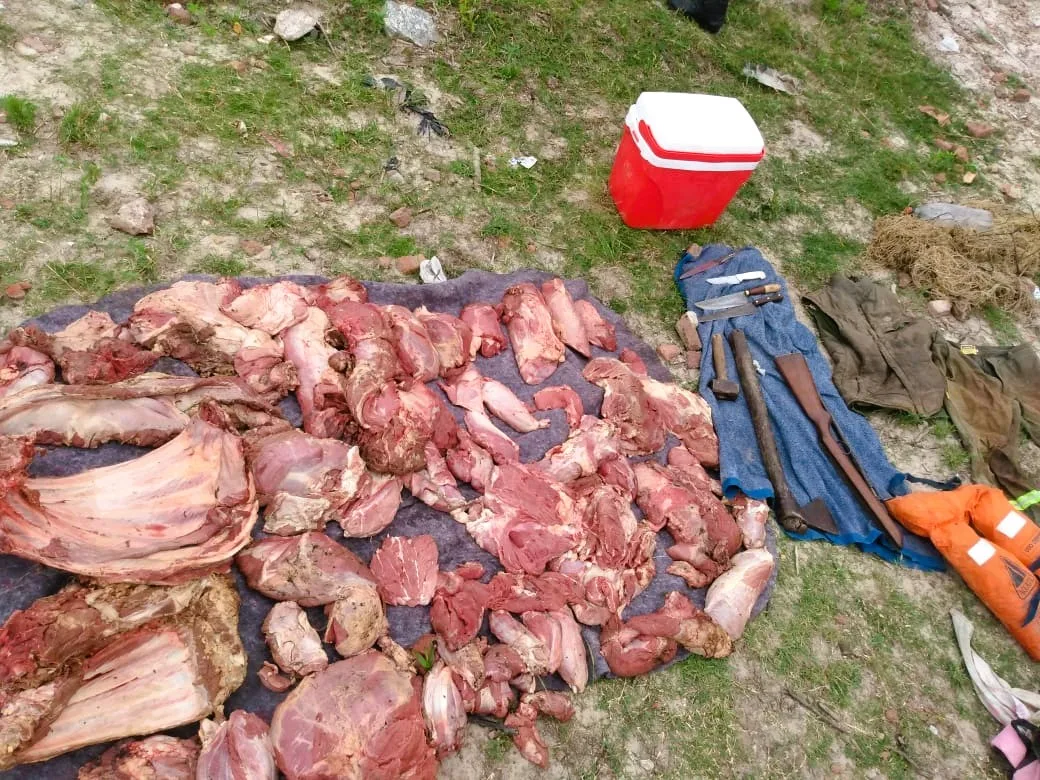 Además de la carne, se procedió al secuestro de una carabina calibre 22 con seis cartuchos del mismo calibre, sin documentación legal; ropa con manchas de sangre, cuatro cuchillas de diversas marcas y medidas, una conservadora de plástico rojo y blanco, una batería de 12×75 marca «Willard» y un trasmallo de 20 metros de largo, elementos que habrían sido utilizados en la actividad ilícita.