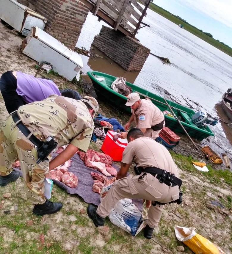 Durante el operativo, se interceptó a una mujer de 45 años, oriunda de la ciudad de Gualeguay, quien transportaba los cortes cárnicos irregulares, de origen vacuno, en dos bolsas platilleras, una mochila de tela y una conservadora. La carne era transportada en una embarcación tipo cano bote con motor fuera de borda de 25 HP, que la mujer no pudo acreditar como de su propiedad ni justificar su procedencia.