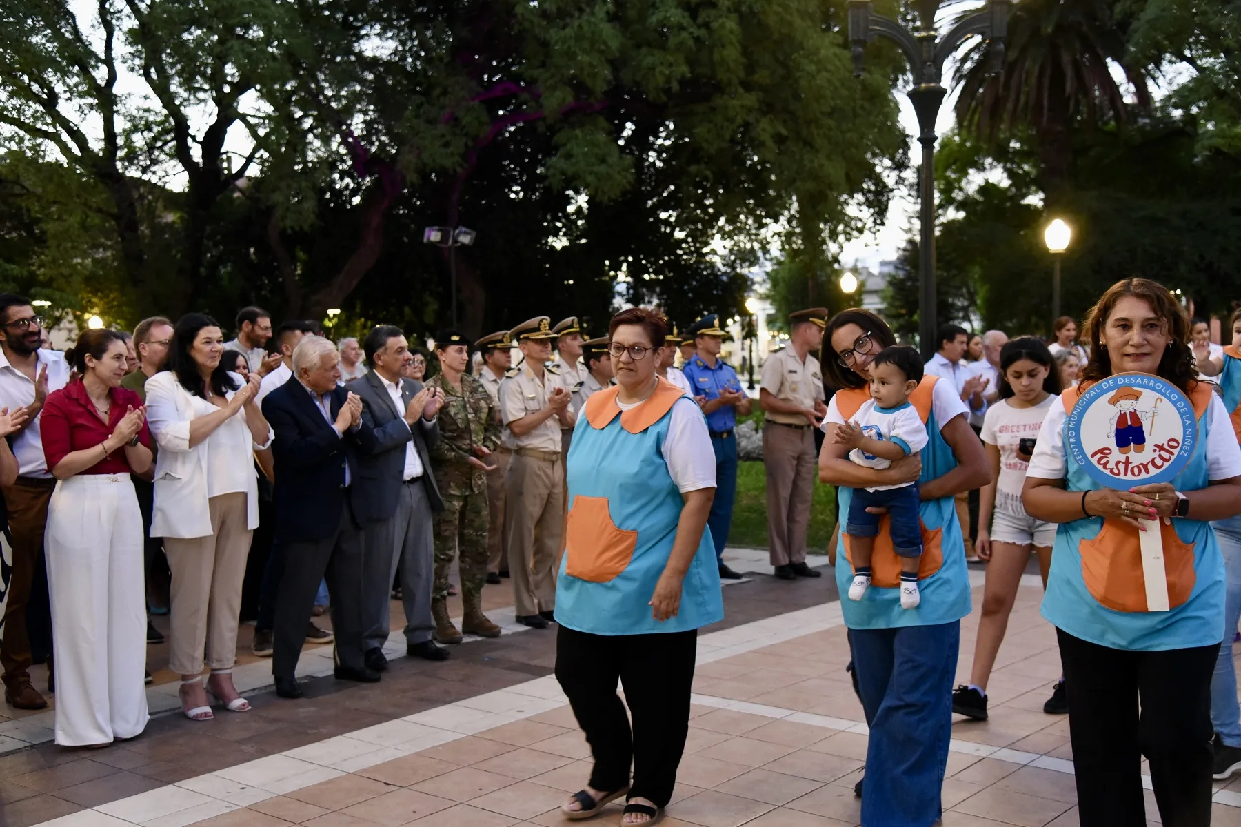 Uno de los momentos más significativos de la jornada fue el pasaje de los niños y estudiantes de los establecimientos educativos municipales, quienes participaron de la ceremonia con un breve desfile frente a las autoridades y las familias. Integraron esta presentación alumnos y alumnas de los seis Centros Municipales de Desarrollo de la Niñez, junto a estudiantes de la Escuela Taller Municipal “Tadea Florentina Jordán”, la Escuela Municipal “Lorenzo Sartorio” y la Escuela Municipal de Artes y Oficios “Héroes de Malvinas”.
