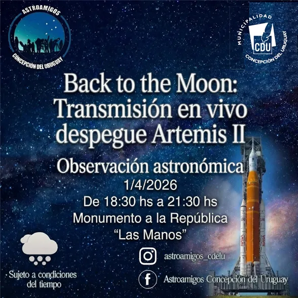 Astroamigos Concepción del Uruguay, en su tarea de llevar la Astronomía y ciencias anexas al ciudadano ha planeado compartir el momento instalando una pantalla gigante, al aire libre para que los conciudadanos puedan ver el despegue de la misión Artemis III.