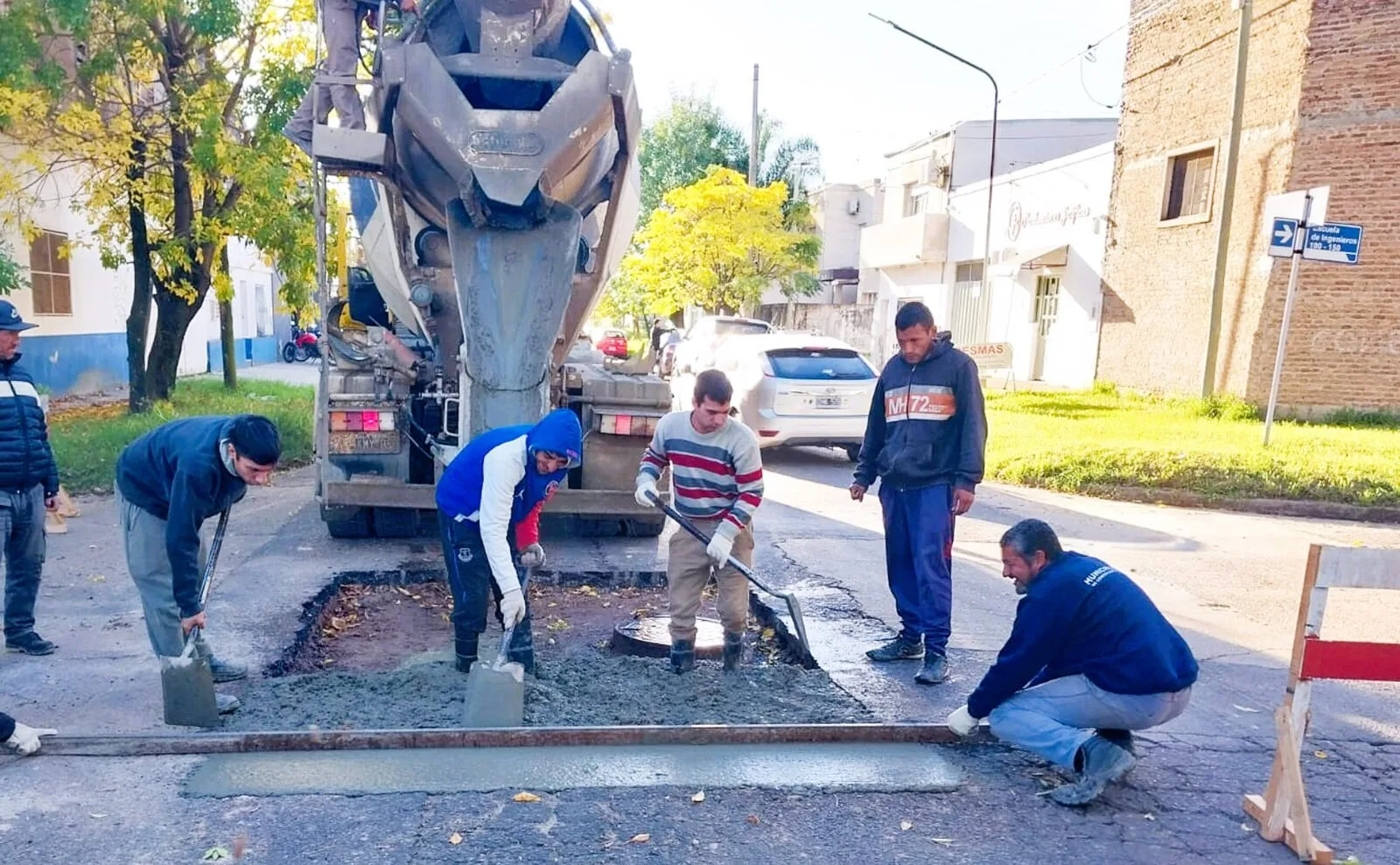Estos trabajos son realizados con fondos íntegramente municipales, y se pide colaboración para que los vecinos de nuestra ciudad cuiden el hormigón fresco en los distintos bacheos.