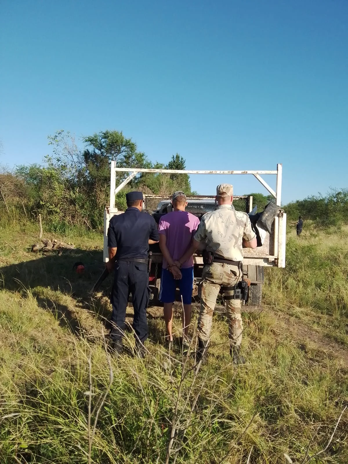 Personal de Abigeato intervino a las 17:00 horas, recibiendo un llamado a la dependencia alertando sobre supuestos cuatreros en la zona de monte ubicado sobre calle Hipólito Irigoyen al Final, al hacerse presente personal policial, constata un camión con carne en su caja; minutos más tardes se hacen presente un masculino de 29 años de edad y una femenina de 25 años de edad, en una motocicleta 110cc. Se puso en conocimiento a la Fiscalía en turno, quien ordena la aprehensión de ambas personas por el Sup/Delito de Abigeato y secuestro de los rodados (camión y moto). Se cree que los autores aún siguen en el interior del campo, por lo que se solicitó Colaboración a la Brigada de Delitos Rurales del Quebracho. Se continúa trabajando en el lugar.