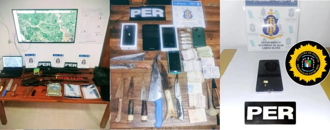 Los detenidos y los objetos incautados serán puestos a disposición de las fiscalías de Entre Ríos y Buenos Aires, para continuar con las investigaciones judiciales correspondientes.