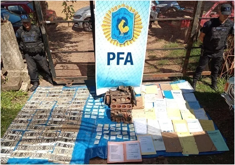 En los operativos se secuestraron 59 chapas patentes de automóviles; 25 cédulas automotor; 27 cédulas de gas de automotores; 38 carpetas con documentación de automóviles; un motor marca Fiat con pedido de secuestro por el delito de hurto; un block de motor marca VW con numeración limada.