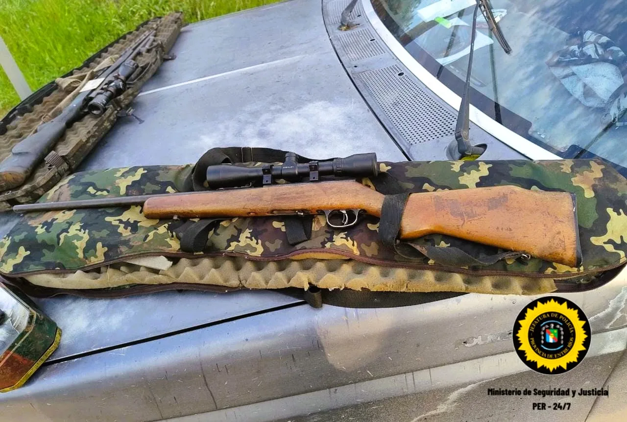 Por último en horas de la noche de este Miércoles, siendo alrededor de las 21:30 horas, personal de la Brigada de Paraná Campaña, alertados por el llamado de un vecino que manifestaba haber observado frente a sus campos un vehículo Chevrolet Ónix alumbrando hacia el interior de los mismos, en inmediaciones de Camino Vecinal de ejido El Pingo conocido como Camino Blanco, interceptaron al mismo en el que se conducían tres ciudadanos de María Grande en evidente situación de realizar la práctica de caza de manera ilegal, quienes portaban con tal fin una Carabina calibre .223 con mira y una Carabina, calibre .22 Largo, y cartuchería de sendas armas, motivo por él le fueron incautadas en razón de los lineamientos que establece la Ley Provincial de Caza N.º 4841, por práctica ilegal de dicha actividad cinegética.
