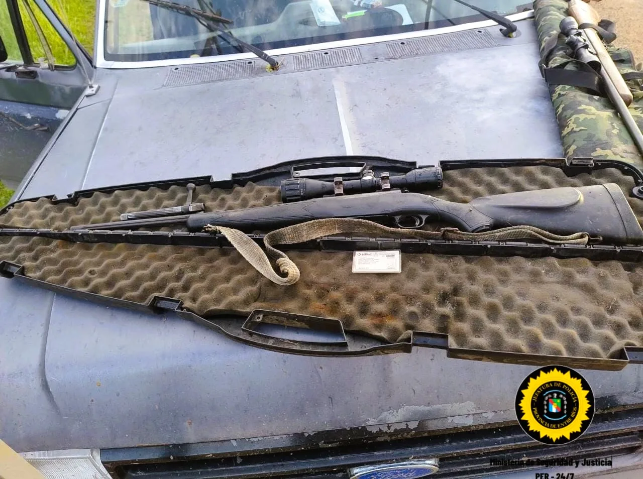 Alrededor de las 07:20 horas del día miércoles, personal de la Brigada de Colon realizaba operativo de control por calle Intendente Matix en la entrada a Pueblo Blanco, donde al interceptar una pick up Ford F-100 conducida por un ciudadano mayor de edad, constataron que transportaba en la caja un ciervo axis producto de encontrarse practicando la actividad cinegética de manera furtiva, y corroborado demás circunstancias del caso, los brigadistas procedieron al secuestro de un Fusil calibre .308 marca Mossberg, y una Carabina calibre 22 marca Marlín, acorde a las normativas previstas en la Ley Provincial de Caza N.º 4841.
