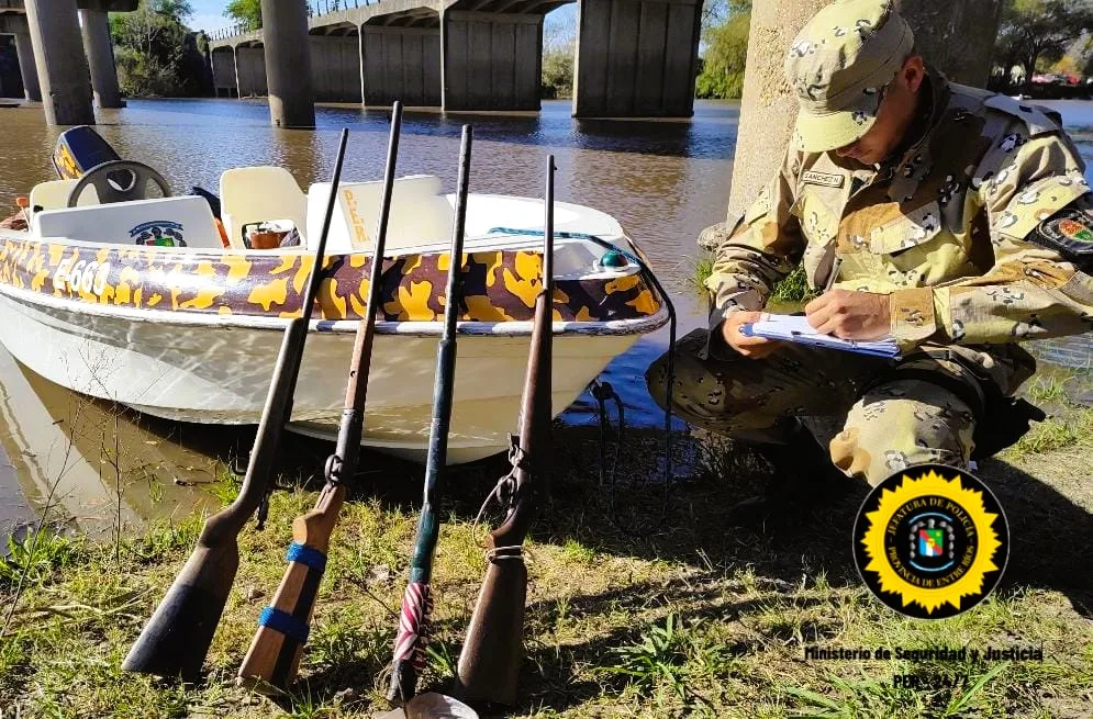Ese mismo día alrededor de las 15:00 horas, la Brigada Primera Sección Islas de Victoria llevaba a cabo un Operativo náutico sobre el Arroyo Careaga, donde procedieron al secuestro de una arma de fuego tipo Escopeta calibre 12 marca HATSAN, carente de documentación habilitante, encuadrándose el hecho en la supuesta tenencia ilegal de arma de fuego y por tanto actuaron en consonancia con las directivas del fiscal en turno de la ciudad de Victoria, resultando supeditados a la causa como responsables dos ciudadanos oriundos de la provincia de Santa Fe que fueron interceptado a bordo de una embarcación tipo Bote, con motor fuera de borda Suzuki llevando consigo el arma incautada.
