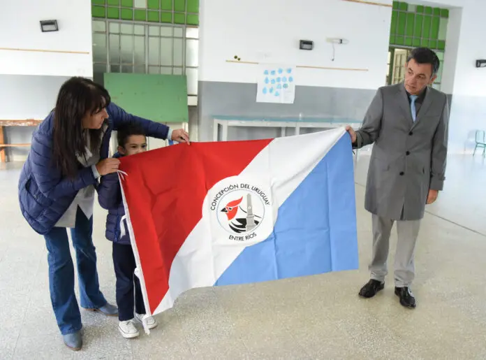 La Municipalidad continúa entregando banderas de ceremonia de Concepción del Uruguay en las escuelas. Durante la semana pasada, el intendente Martín Oliva se las entregó a las comunidades educativas de las escuelas “Justo José de Urquiza”, “Pedro Ponce de León” y “Recuerdos de Provincia”.