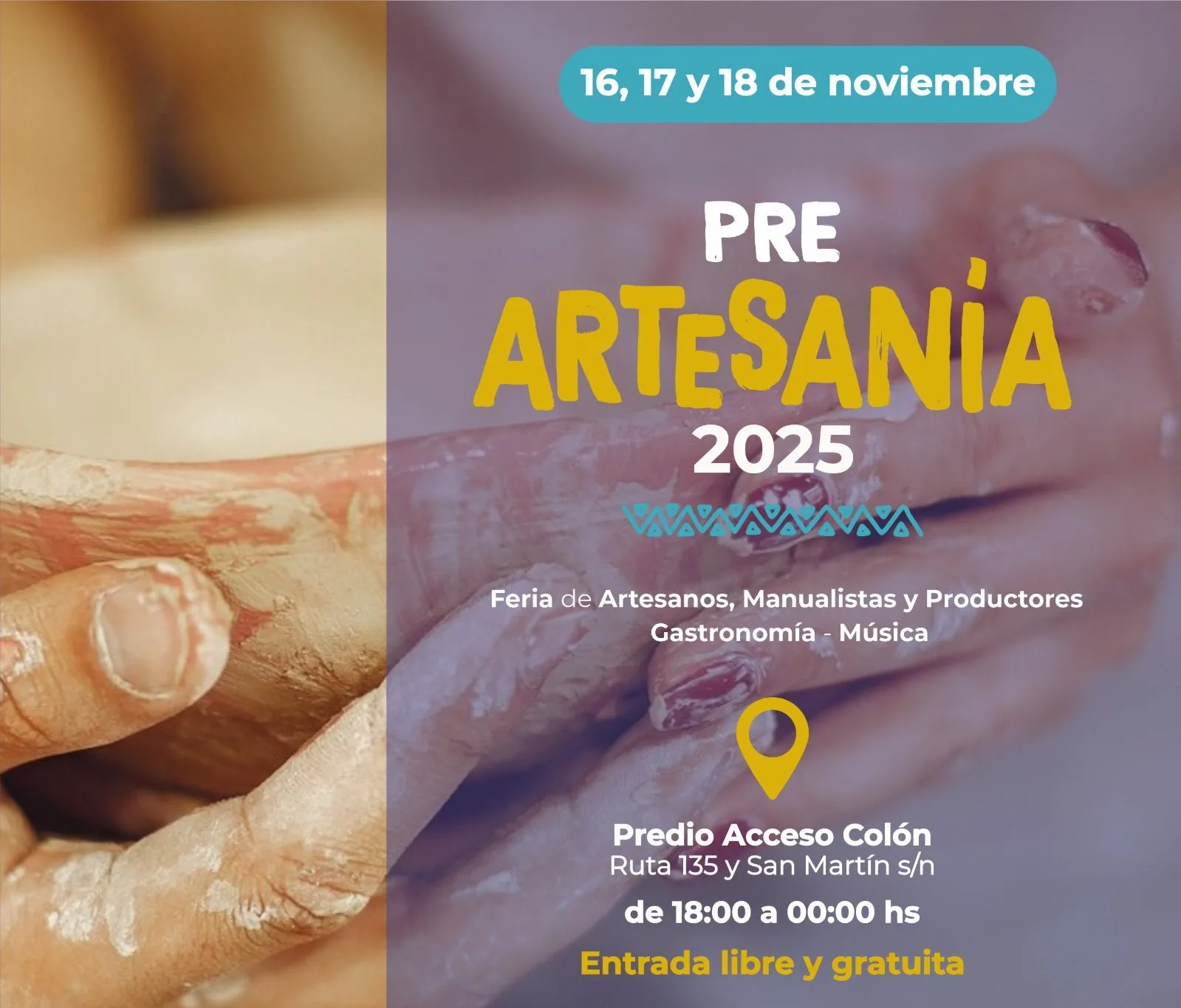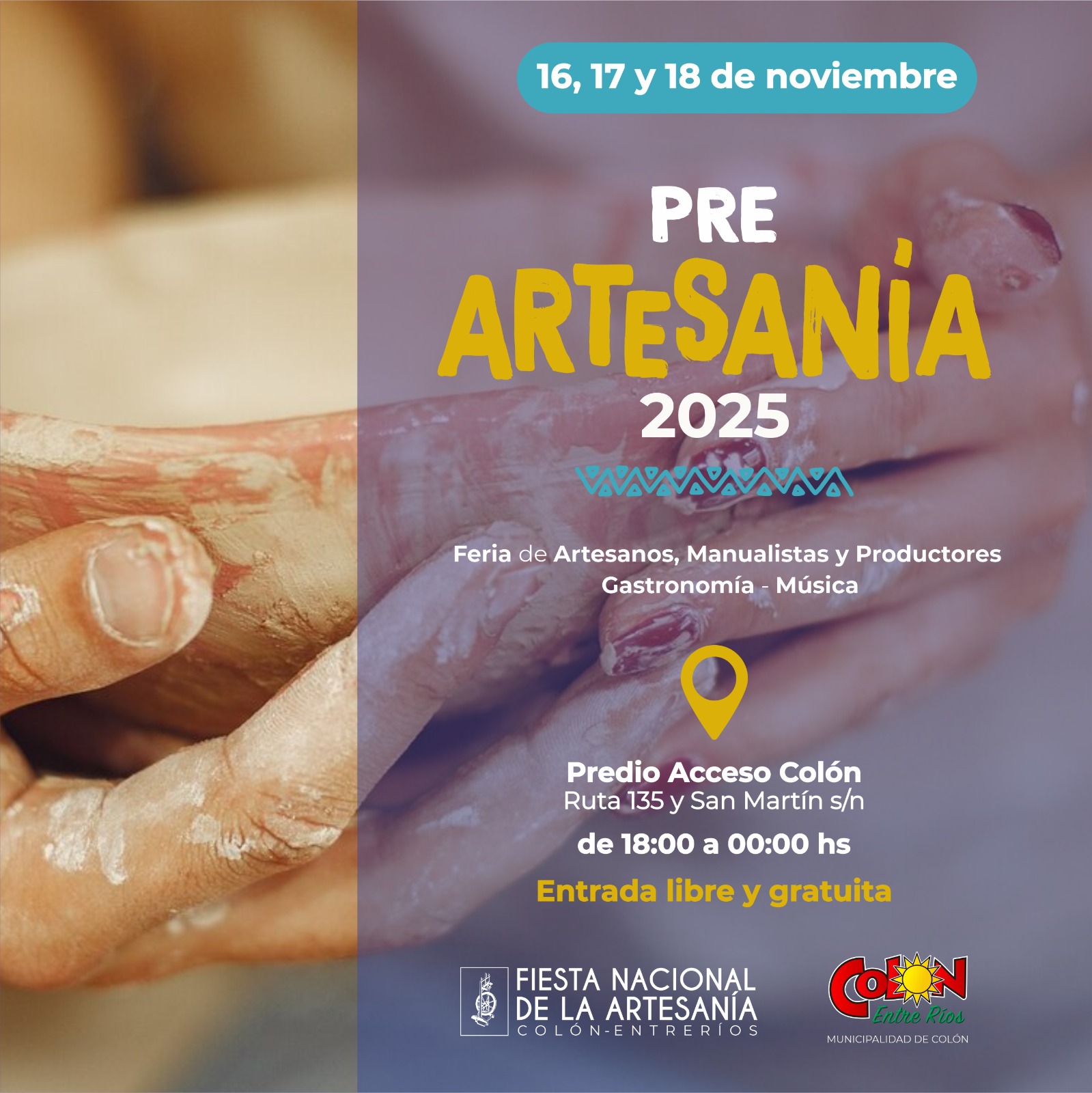 La Municipalidad de Colón, a través de su Secretaría de Turismo y Cultura, invita a vecinos y turistas a disfrutar del Pre-Artesanía 2025, un evento que se realizará del 16 al 18 de noviembre en el predio de acceso a la ciudad, sobre la Avenida San Martín y Ruta 135. Este encuentro ofrecerá una variada propuesta de música en vivo, espectáculos culturales y gastronomía, con la participación de artesanos y manualistas que serán parte de la Fiesta Nacional de la Artesanía en febrero próximo.