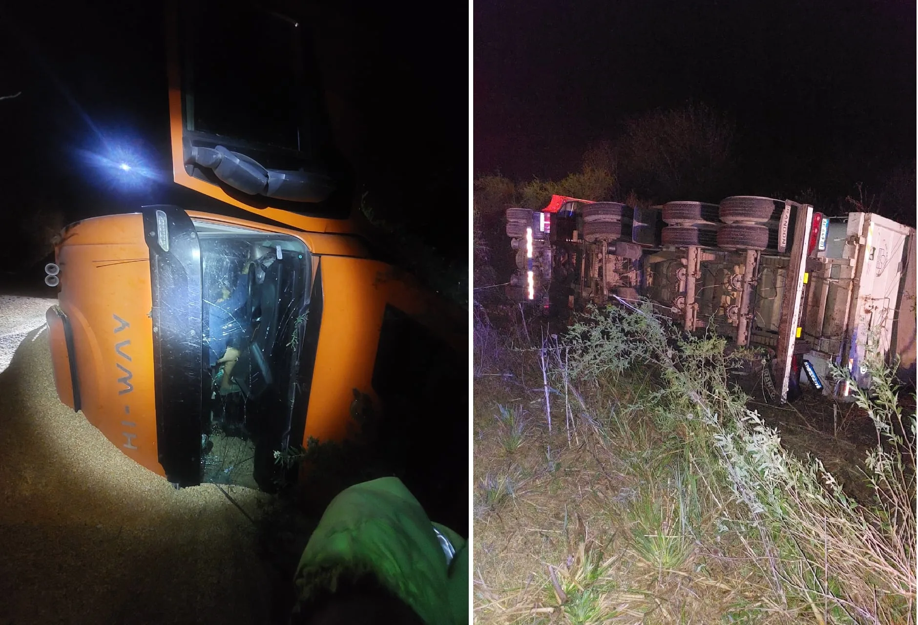 En la madrugada de este miércoles, personal policial de Gobernador Maciá toma conocimiento, que en ruta Provincial 6, que 5 km al Norte de acceso a Maciá se produjo un vuelo sin lesionados de un camión Iveco Stralis con batea Randon, el cual transportaba maíz, conducido por un masculino, oriundo de San Salvador, de 32 años, el mismo se dirigía desde Córdoba hacia Villaguay.