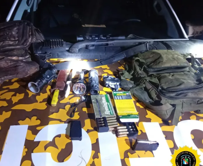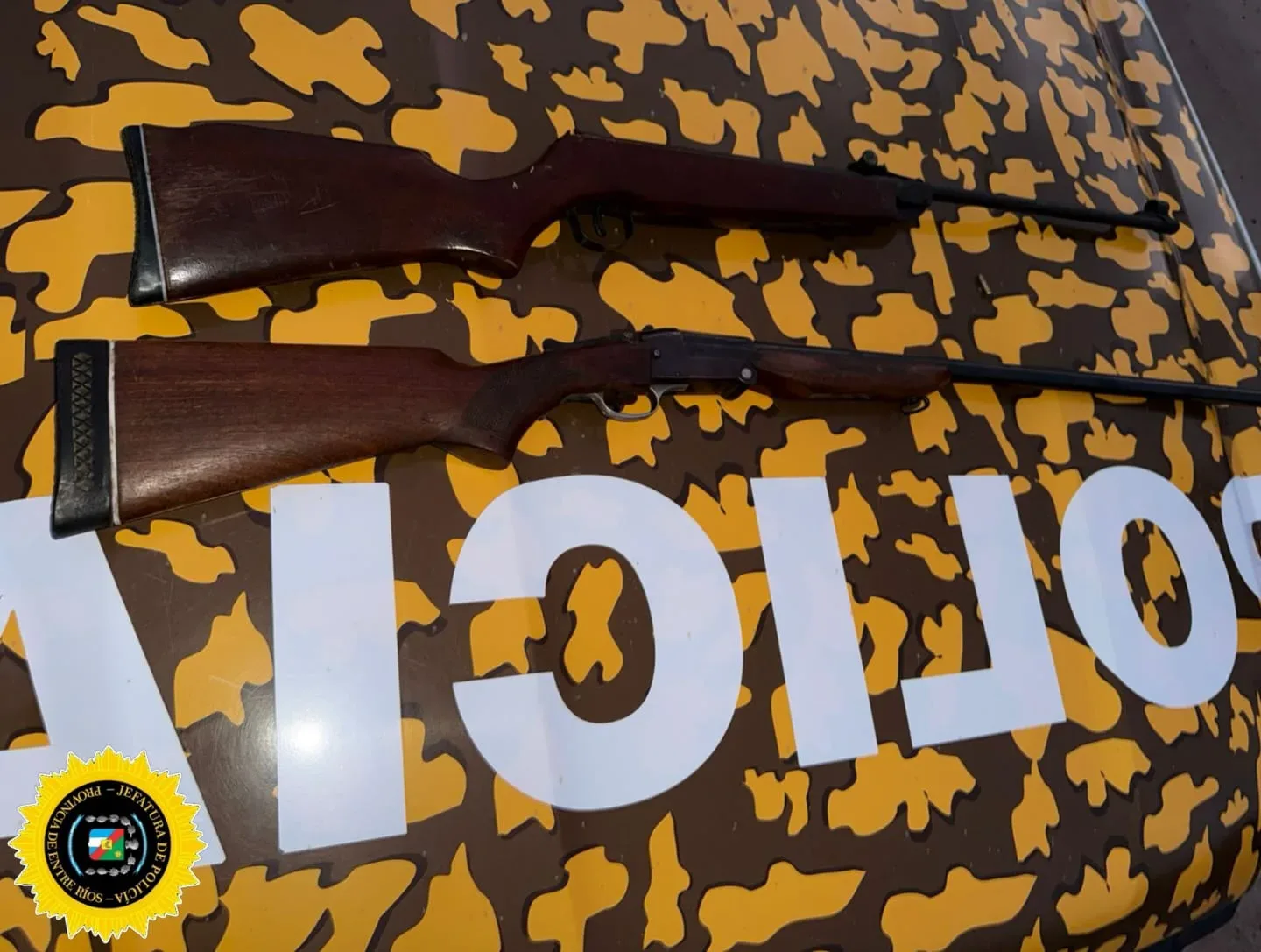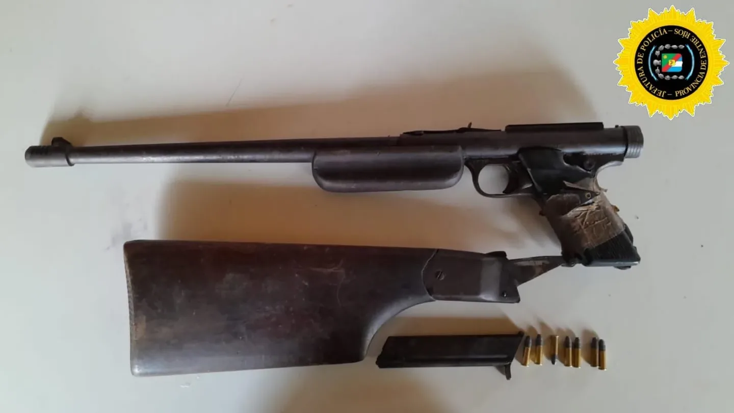 En otra intervención en el departamento Tala, se halló una carabina calibre .22 abandonada al costado de un camino vecinal. Fue secuestrada con el fin de establecer su procedencia y posible vínculo con delitos rurales.