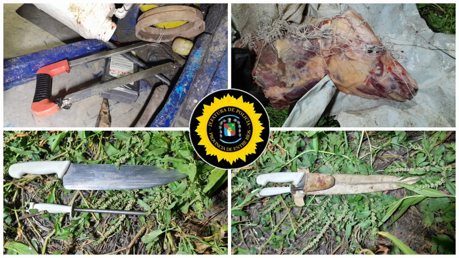 Tras confirmar la situación, se dio intervención a la Brigada de Abigeato “Laguna del Pescado”. En coordinación con el fiscal de turno, se ordenó la detención de los individuos y su traslado a la Jefatura Departamental de Victoria, donde se realizó el secuestro de los elementos encontrados.