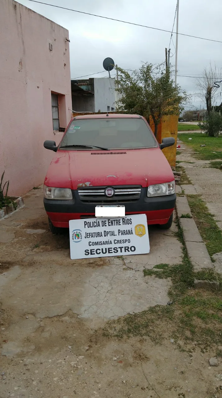Personal policial realizó tareas investigativas pudiendo dar con el domicilio donde se hallaba la unidad, efectuándose informe y solicitando una orden de allanamiento. En la fecha, siendo las 15:10 horas realizaron el procedimiento mediante oficio OGA y autorizado por el Juez de Garantías N°3, en una vivienda ubicada en calle Los Reseros de Crespo, notificando a una ciudadana de 40 años de edad y por disposición de la Magistratura interviniente secuestrando el auto interesado marca Fiat, modelo Uno Fire, color rojo.
