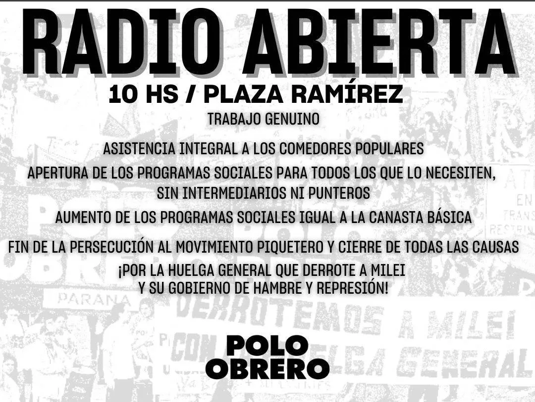 Este viernes 25 de octubre se desarrolló en Capital Federal un enorme plenario piquetero con más de 20 organizaciones del Frente de Lucha Piquetero y la presencia de alrededor de mil delegados barriales. Ante la grave situación social y económica agravada por el brutal ajuste del gobierno se definió, en principio, un plan de lucha que comenzará con una jornada nacional este miércoles 30 en coincidencia con el paro. Puntualmente en Concepción del Uruguay, el Polo Obrero, convoca a una radio abierta en Plaza Ramírez desde las 10 hs a la que se invita a todos los sectores en lucha, estatales, trabajadores de salud, estudiantes, docentes, jubilados y la población en general. Esta como las diferentes acciones que se desarrollen serán bajo la consigna «Fuera Milei» ya que las organizaciones consideraron que las políticas de Milei son «incompatibles con la vida».