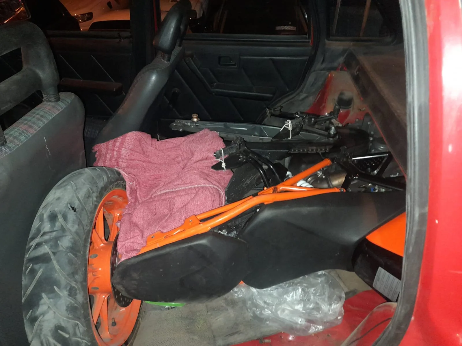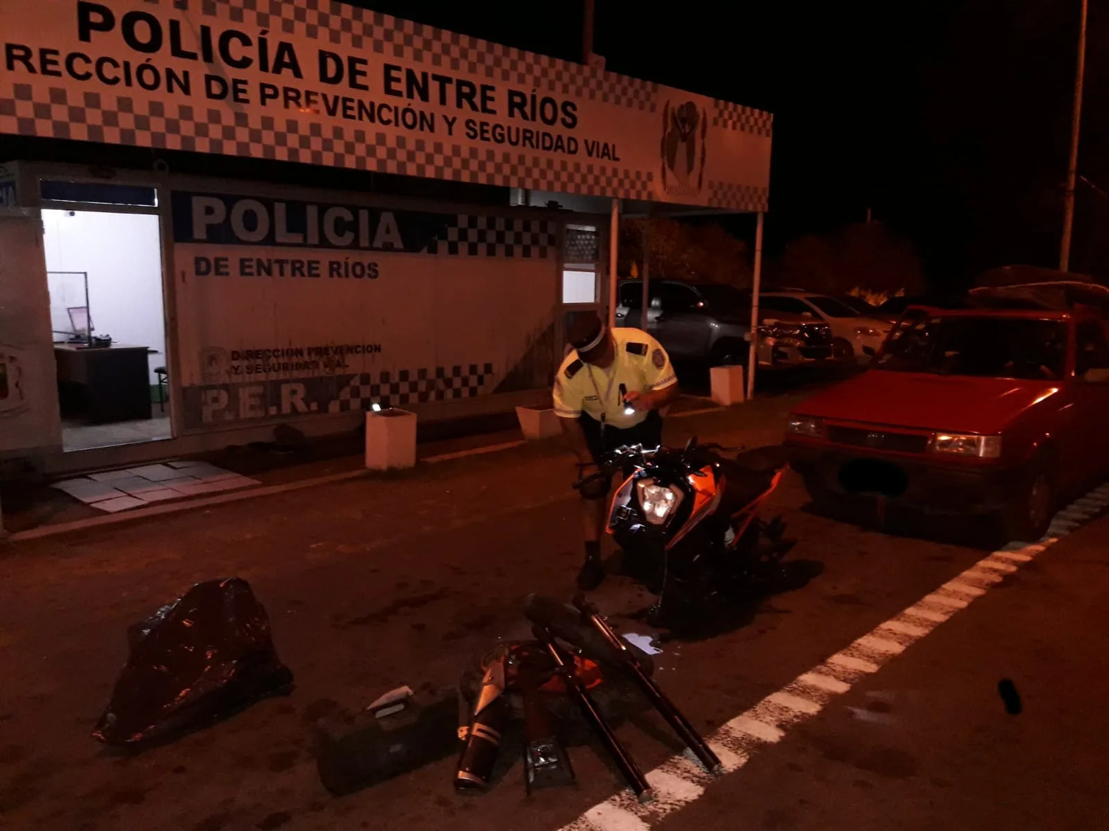 En la noche personal del Puesto caminero Brazo Largo, logra detener la marcha de un vehículo que ingresaba desde Buenos Aires a nuestra provincia, siendo marca MERCEDES BENZ, modelo GH Accelo 815, destinado al servicio de grúa y en el cual se trasladaban el conductor y dos acompañantes, todos mayores de edad y domiciliados en la ciudad de Gualeguaychú. Sobre este rodado se transportaba un vehículo marca FIAT, modelo Duna. Se solicitó la documentación obligatoria para circular y también la del vehículo transportado, del cual no poseían. Ante esta circunstancia se procedió a chequear el dominio de este último rodado mediante página informática DNRPA, donde surge que el dominio correspondía a una camioneta marca Ford, modelo Ranger. Posteriormente se da intervención al Personal idóneo en verificación y se utiliza además el sistema informático SiFCoP, donde se corrobora que los números de motor y chasis corresponden a un rodado marca Fiat, modelo Duna sobre el cuál recae un Pedido de Secuestro Vigente de fecha 14 de febrero de 2023 de la UFYYJ 02 Desc. Ituzaingó Dpto. Jud. Morón. Luego de esto, se solicita que abran el baúl del rodado, a lo cual acceden voluntariamente notando que se encontraba totalmente desarmado un motovehículo, tomando intervención nuevamente el Personal idóneo en verificación, logrando observar que número de cuadro y motor no presentan anormalidad alguno y consultado en los sistemas informáticos surge que corresponde a Motocicleta Marca KTM modelo 250 Duke, sobre la cual también pesa un Pedido de Secuestro Vigente de fecha Noviembre de 2.022 de UFIYJF Nro. 06 Dpto. Judicial de La Matanza.