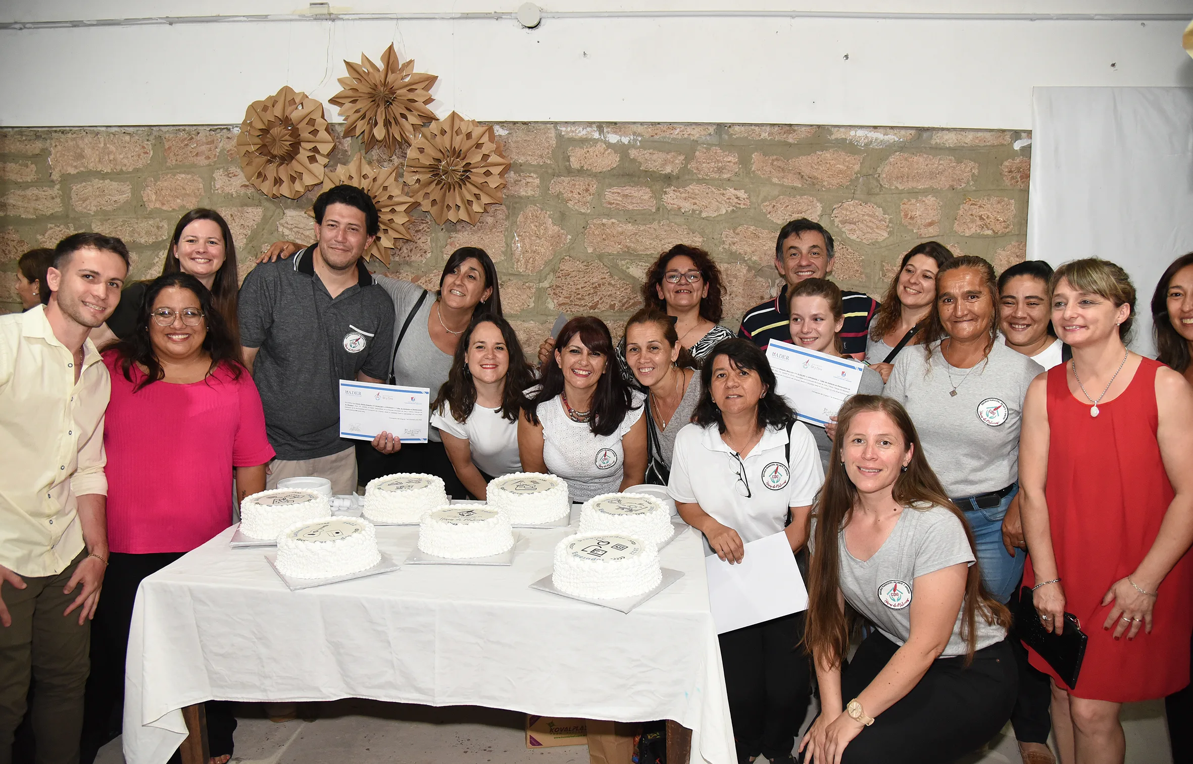 Toda la comunidad de la Escuela vivió una emotiva ceremonia de la cual fueron protagonistas 125 graduados de los cursos de albañilería, dibujo urbano, luthería, programador inicial, restauración de muebles y textil industrial. De ellos fueron reconocidos como mejores compañeros María Cristina Villanova, Pablo Ovispo, Ana Barral, Ana María Lescano, Irma Acosta y Nicolás Herner.