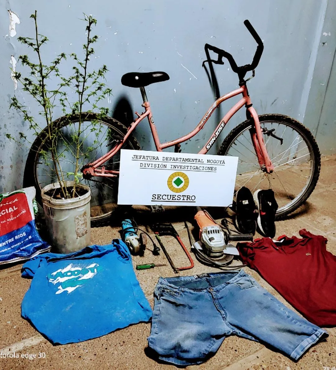 En el marco de actuaciones iniciadas en Comisaría Villa 3 de febrero, en fecha 27 de marzo de 2023, a denuncia de un ciudadano de 76 años de edad, por el supuesto delito de robo, personal de la División Investigaciones abocado al esclarecimiento del hecho, logró identificar a los autores, resultando ser dos menores de 16 y 17 años de edad. A raíz de los datos recabados, desde el Juzgado de Transición y Garantías se ordenó el allanamiento y registro domiciliario de dos fincas, una en calle Güemes y otra en Villa 14, arrojando resultados positivos, procediendo al formal secuestro de una bicicleta rodado 26, color rosa, una remera color bordó, una bermuda de jean clara y un par de zapatillas; una bolsa de plastillera, una remera color celeste, un destornillador Philips, todo ello de interés en la causa investigada.