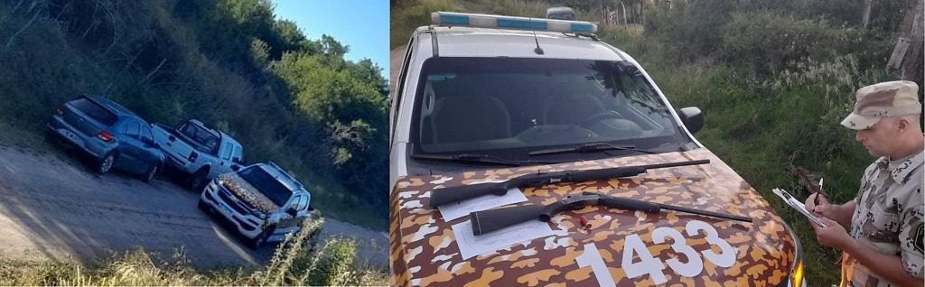 Este Sábado por la tarde, personales e la Brigada de Prevención Delitos Rurales Gualeguaychú, llevo adelante un procedimiento en el Distrito Costa Uruguay Sur, dónde los uniformados luego de realizar una espera, debido a encontrar dos vehículos estacionados a la vera de un camino vecinal sin persona alguna a su cuidado, interceptaron saliendo de un campo, tras saltar el alambrado, a dos ciudadanos mayores de edad domiciliados en la ciudad de Gualeguaychú, los cuales portaban dos armas largas, una cada uno de ellos, tratándose de dos escopetas calibre 12, de las cuales los mismos no contaban con la documentación reglamentaria exigida por Ley.