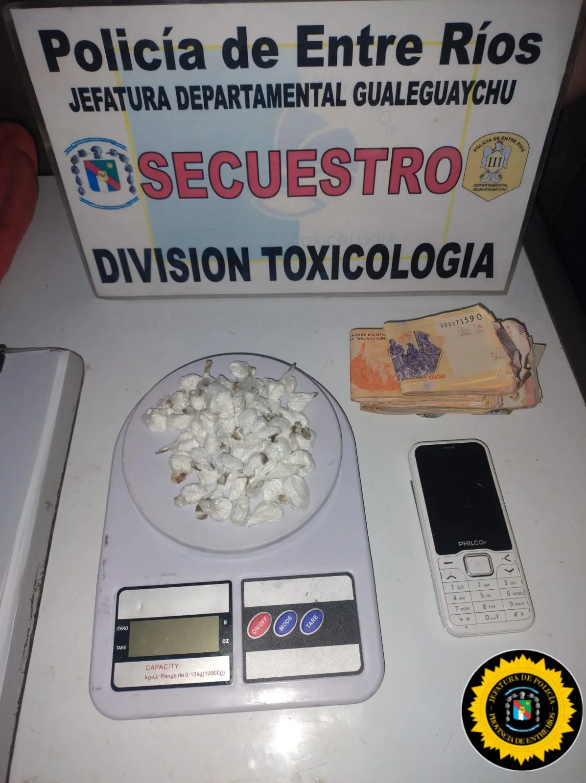 Al concluir el operativo, se informó a la magistratura interviniente sobre los resultados obtenidos, disponiendo el formal secuestro de los elementos mencionados y la detención de dos masculinos. Estos fueron trasladados a la Jefatura Departamental Gualeguaychú, donde quedarán a disposición de las autoridades judiciales correspondientes.