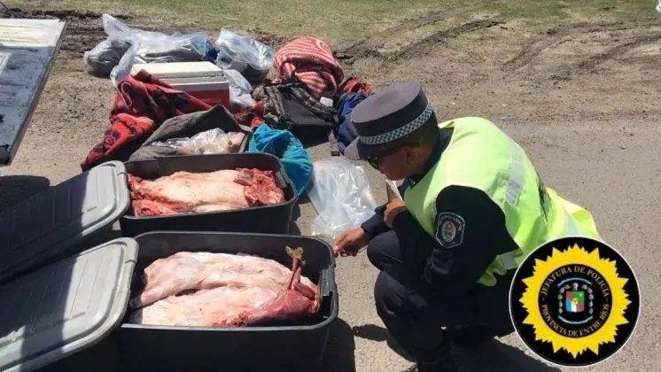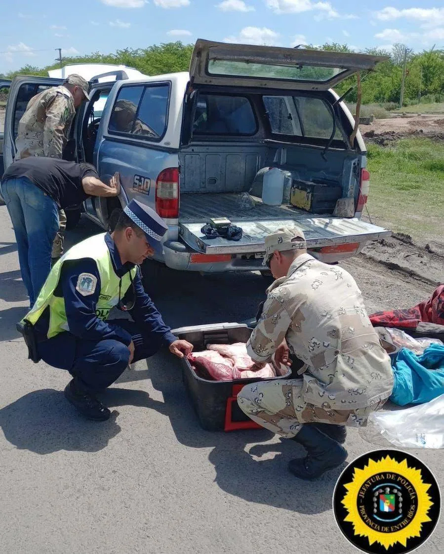 En RN N°18, personal de Puesto Caminero Viale y la Brigada de Abigeato llevaron a cabo un procedimiento que resultó en el decomiso de 200 kg de jabalí y 50 kg de ciervo axis, que eran transportados en una pick up Chevrolet S-10 por cinco hombres, todos mayores de edad, con domicilio en Rosario, Santa Fe. Estos individuos se encontraban en infracción a la Ley Provincial de Caza n°4841.