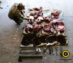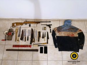 Durante la tarde, en los otros domicilios allanados en calle Rosa Ragazzi, calle Las Tropas y Bulevar Montana, los agentes incautaron cuchillos, hachas, una balanza y una máquina de picar carne. Además, se encontraron dos armas de fuego: una carabina a repetición y una pistola semiautomática, ambas calibre .22, así como ropa con manchas de sangre y teléfonos celulares de los moradores, que serán analizados por el Gabinete forense del Ministerio Público Fiscal.