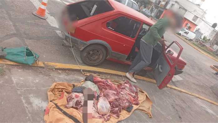 Ante la situación, el móvil policial procedió a interceptar el rodado en la intersección de Luis N. Palma y Boulevard de León, con el fin de identificar a los ocupantes. Durante el procedimiento, los efectivos constataron que en el baúl del automóvil transportaban varios cortes cárnicos de dudosa procedencia. Consultados por el origen, los individuos manifestaron que se trataba de más de 100 kilos de carne de jabalí.