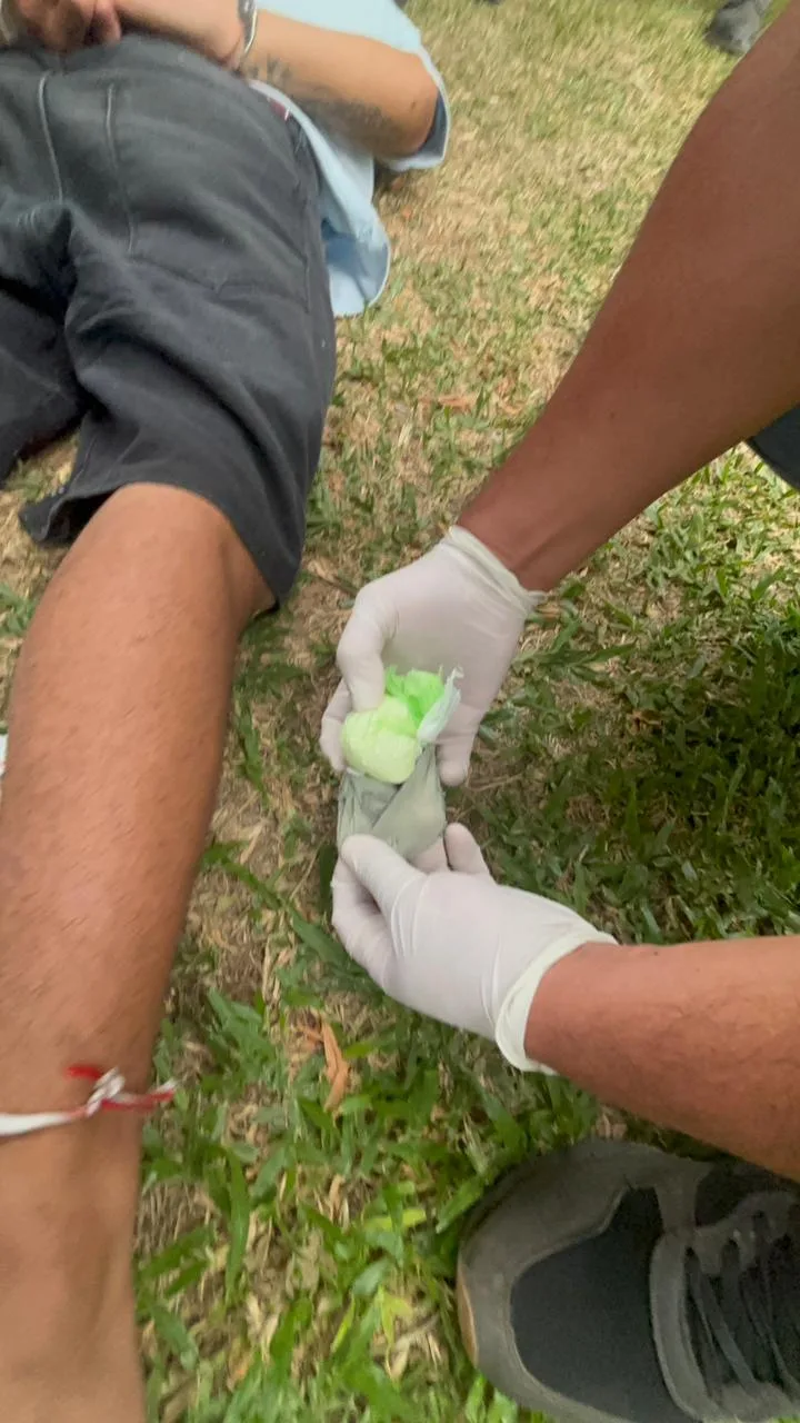 Ante esta actitud sospechosa, los uniformados procedieron a interceptar el rodado e identificar al conductor. Durante el control y palpado preventivo, el individuo exhibió sus pertenencias, entre las que se halló una media que contenía varios envoltorios de nylon.