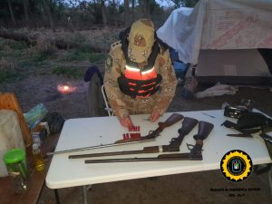 En el departamento Diamante, se llevaron a cabo diferentes operativos con resultados positivos siendo uno de ellos realizado este viernes 20, en un operativo realizado en Río Paraná «Islote El Pillo», los uniformados observaron un campamento donde se encontraban tres masculinos oriundos de la provincia de Santa Fe, quienes al identificarlos, se constata que poseían tres (03) armas largas, las cuales se encontraban listas y preparadas para su uso inmediato, además se observa un animal de la Fauna silvestre abatido, así mismo ninguno presentaba Credencial de Tenencia y C.L.U, por tal motivo se iniciaron actuaciones por el delito de Tenencia Ilegal de armas de fuego procediendo con el secuestro de Una (01) escopeta Marca Rossi, Cal. 14; Una (01) escopeta Marca Invicta Calibre 16 UAB; y Una (01) Escopeta calibre 16 UAB, además de Catorce (14) Cartuchos de diferentes calibres.