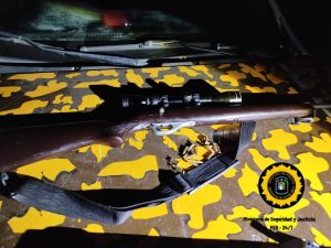 El segundo procedimiento se llevó a cabo el día domingo 22 en horas de la madrugada cuando en el ejido de Crespo zona, donde identificaron a unas personas que se conducía en una camioneta, que al momento del control observan que en el asiento del acompañante poseía un arma de fuego, siendo una (01) carabina semiautomática, marca Marlín cal.22 y un proyectil del mismo calibre, careciendo de permiso de caza.