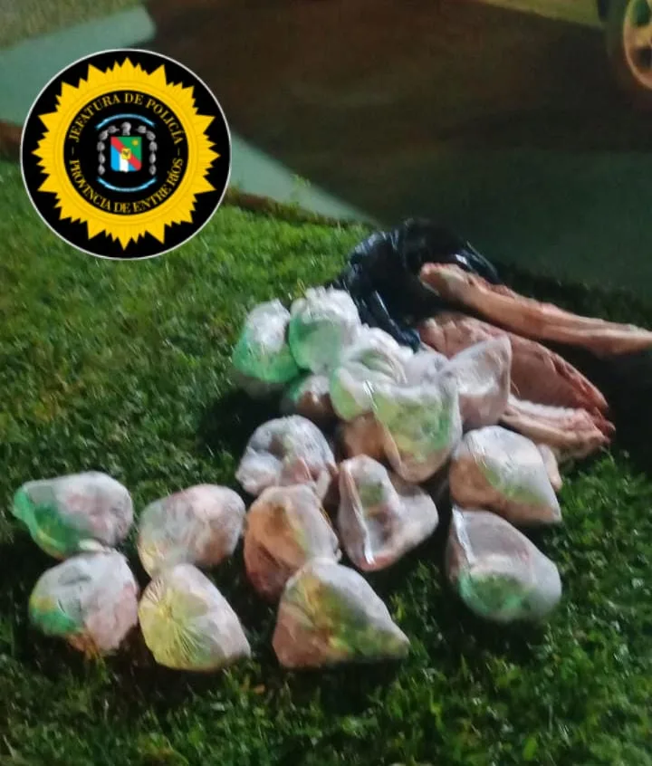 En otro operativo, en la Ruta Nacional 14, en el Puesto Caminero Paso Cerrito, se interceptó una camioneta que transportaba carne congelada sin mantener la cadena de frío ni contar con la habilitación de SENASA. El personal de la Dirección Prevención Delitos Rurales y veterinario policial decomisó dos media reses de ovino y 21 bolsas de carne vacuna, sumando un total de 88 kilogramos. La intervención se realizó de acuerdo con la Ley de Carne, artículos N° 355, 375 y siguientes.