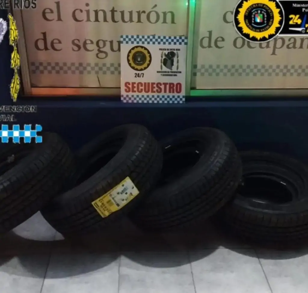 Efectivos interceptaron un Peugeot Partner que ingresaba a Entre Ríos desde Corrientes. En el vehículo viajaba una familia con dos menores de 5 y 10 años. Durante el control, se encontraron doce neumáticos nuevos de distintos tamaños (rodados 17, 15 y 14) en el baúl. Por disposición del Juzgado Federal de Concordia, se secuestró la mercadería y los teléfonos celulares de los adultos, quienes quedaron supeditados a la investigación en curso.