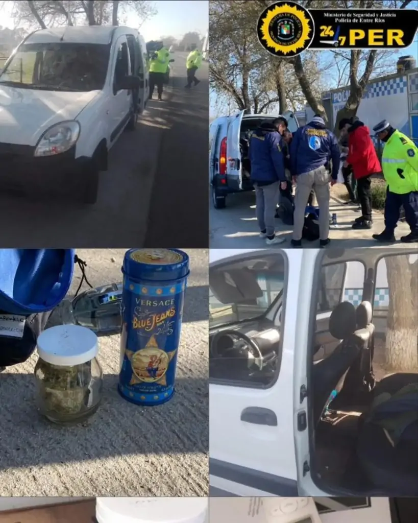 En una operación conjunta entre efectivos de toxicología y policías desplegados en la ruta nacional 12, se detuvo la marcha de una Renault Kangoo en la que viajaban cinco jóvenes de entre 20 y 25 años, domiciliados en Concepción del Uruguay. Durante el control, se encontraron dos frascos de vidrio que contenían 140 gramos de marihuana. Con la autorización de la Fiscalía a cargo de la Dra. Georgina Moreyra, se incautó la sustancia, y los jóvenes fueron liberados, supeditados a la investigación en curso.