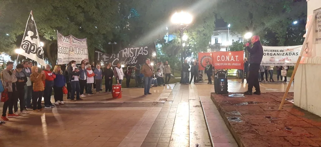 Una significativa manifestación en defensa de los derechos de los jubilados tuvo lugar este miércoles 12 por la noche en Concepción del Uruguay. La convocatoria, realizada por el Movimiento Obrero y Social Uruguayense (MOSU), reunió a diversos sectores sociales frente a la pirámide de la Plaza General Francisco Ramírez, bajo la consigna: «Porque no soportamos más el castigo, salimos a proteger a tu abuela y abuelo y tu vieja».