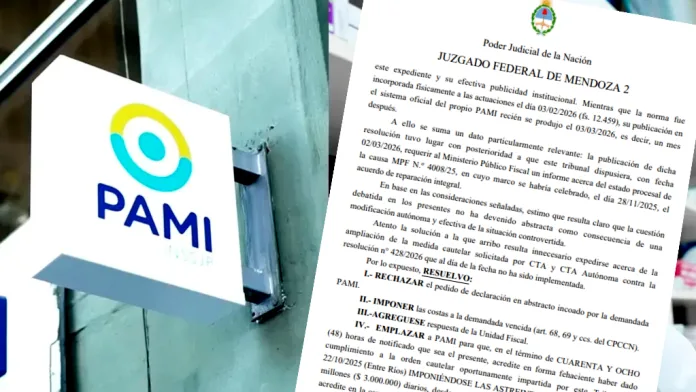 “Emplazar a PAMI para que, en el término de cuarenta y ocho (48) horas de notificado que sea el presente, acredite en forma fehaciente haber dado cumplimiento a la orden cautelar oportunamente impartida por este Tribunal el 22/10/2025 (Entre Ríos) imponiéndose las astreintes (multa) por la suma de pesos tres millones ($ 3.000.000) diarios, desde que concluya el plazo aquí señalado y hasta tanto acredite en la causa el cumplimiento de la manda judicial”, falló el juez.