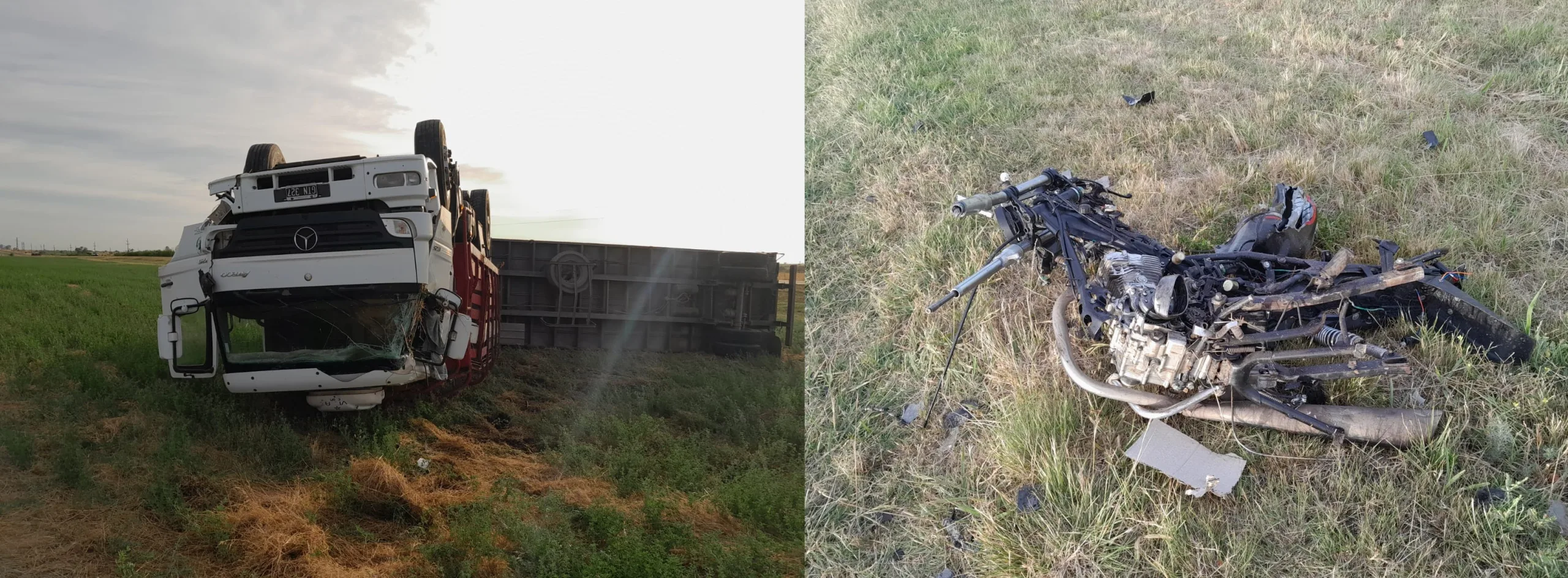 En horas temprana de este sábado siendo las 6:10 horas, Personal de Comisaria Lucas González inició actuaciones policiales, a raíz de siniestro vial ocurrido en Ruta Nacional 12 a la altura del Km. 323,5; lugar donde un camión marca Mercedes Benz, con acoplado, el que se dirigía por Ruta 12 desde Paraná hacia Rosario del Tala, conducido por ciudadano, de 36 años de edad, domiciliado San Benito, Dpto. Paraná, por razones que se tratan de establecer, colisionó de frente con una motocicleta marca Corven, modelo Hunter 150 c.c., la que transitaba por Ruta 12 en sentido contrario, conducida por una persona del sexo masculino, de 27 años de edad, domiciliada en Lucas González, quien perdiera la vida a raíz del impacto, quedando el camión volcado sobre la banquina el cual iba sin carga. Intervino División Criminalística, médico de policía y médica forense. Se informó al Fiscal de Turno se realizó extracción de sangre para test de alcoholemia.