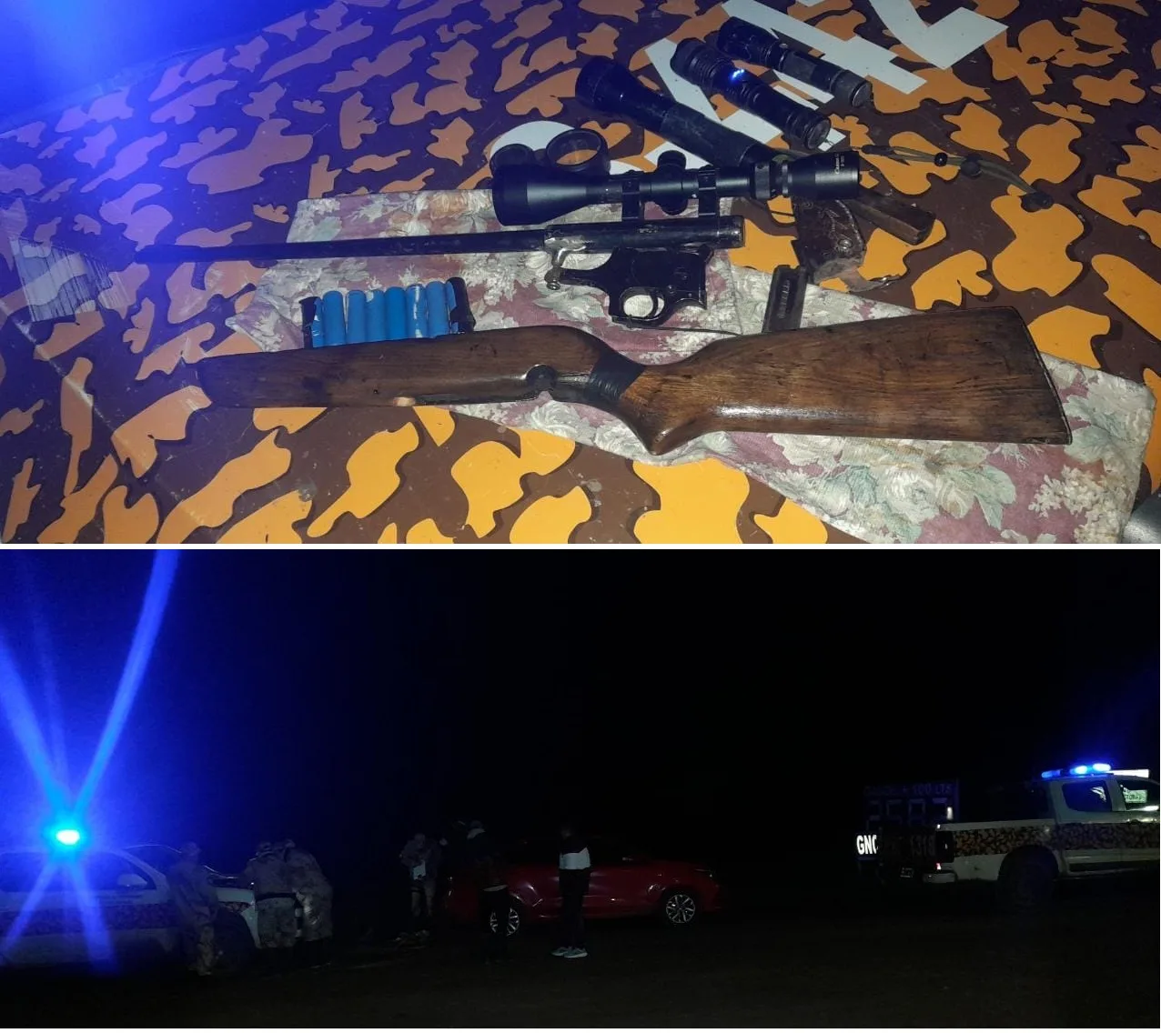 Durante el fin de semana, realizando operativos nocturnos en zonas estratégicas del Dpto., los Brigadistas interceptaron en el Km 83 de la Autovía Nacional 14, la marcha de un Automóvil, en el cual se conducían dos ciudadanos mayores de edad domiciliados en Gualeguaychú, los cuales transportaban Una carabina a repetición calibre 22 LR con mira telescópica, armamento del cual carecían de toda documentación Reglamentaria exigida por Ley.