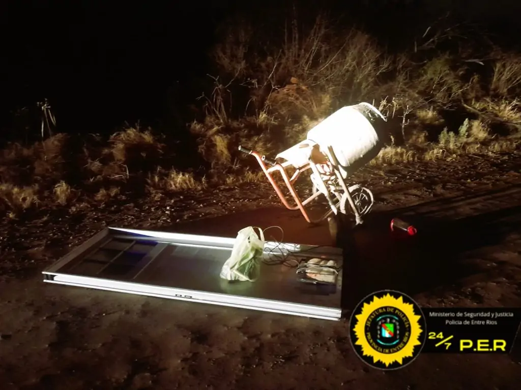 Anoche, aproximadamente a las 23:30 horas, en el marco de operativos de prevención dispuestos en el loteo «Las Quintas» ubicado detrás de las termas de Concepción del Uruguay, divisando en la intersección de calle pública y Río Mocoreta a tres individuos transportando varios objetos, quienes al percatarse de la presencia policial abandonaron los elementos en el lugar y huyeron hacia el monte, perdiéndose de vista.