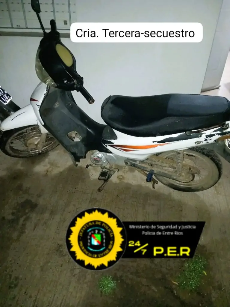 Por otro lado, un operativo llevado a cabo por personal de la Cría Tercera resultó en la recuperación de una moto marca Brava Nevada 110. La motocicleta, también robada, fue hallada abandonada en un descampado próximo a una obra en construcción ubicada en la intersección de las calles Rubinsky y Enrique Morera. Tras recibir el aviso sobre el hallazgo, los oficiales realizaron una búsqueda que llevó al secuestro del vehículo, con la intervención de Criminalística y un Verificador para el proceso.
