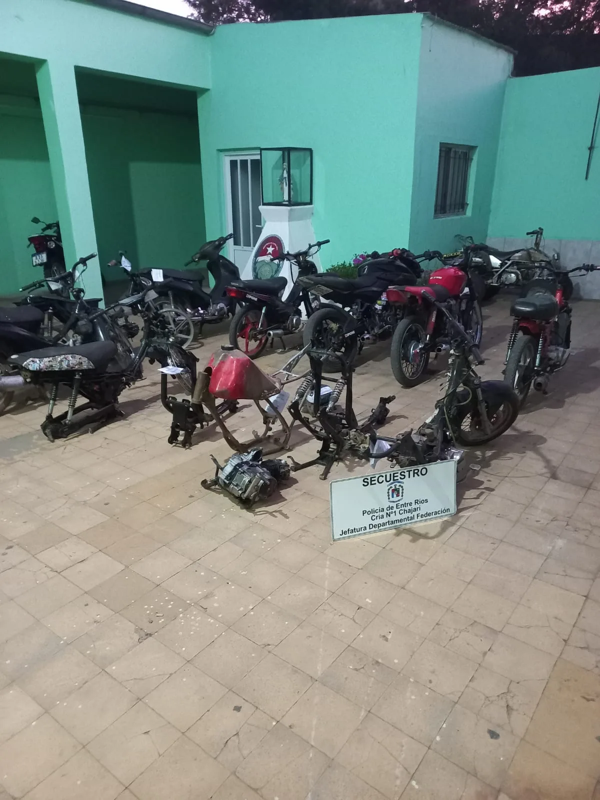 En la fecha en horas de la tarde, relacionado a actuaciones » Iniciadas de Oficios por personal de Comisaria Chajarí – referentes a PICADAS DE MOTOS EN AUTOVÍA 14 «, con intervención de la Fiscalía en turno, teniendo gran preocupación por la integridad física de estas personas y terceros; se realizaron Seis Allanamientos y requisa domiciliarias en forma simultáneas, en diferentes puntos de la ciudad, en los domicilios de jóvenes que agrupaban a través de redes sociales a los grupos a realizar dichas picadas, donde se procedió al formal secuestro de ocho motos de diferentes cilindradas preparadas para las carreras, como así también cuadros, motores, caños de escapes y teléfonos celulares de los allanados. Elementos puestos a disposición de la fiscalía interviniente.-