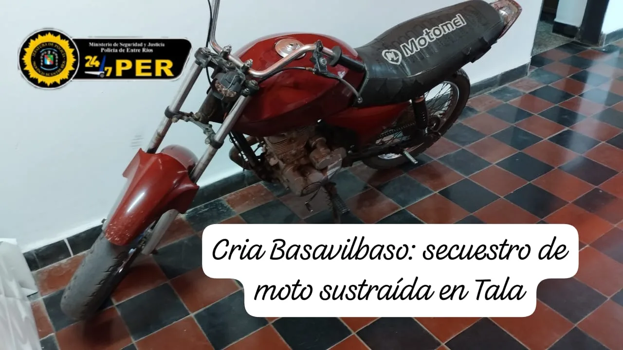 En la tarde de hoy, personal policial de Basavilbaso logró recuperar una motocicleta que había sido robada en Rosario del Tala. El propietario de la moto, quien había denunciado el robo una semana antes, acudió a la dependencia policial de Basavilbaso después de encontrar fotografías de su vehículo en el perfil de un usuario de Facebook.